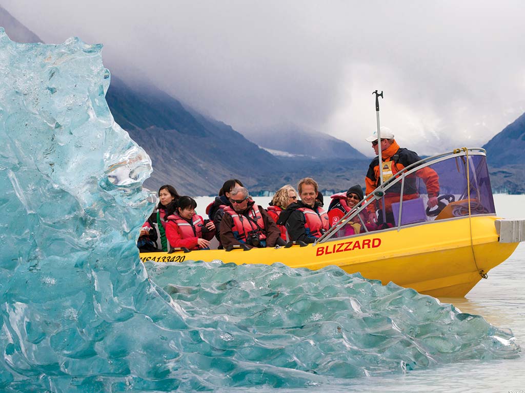 Glacier Explorers has been operating boat tours on the Tasman Glacier terminal lake in the Aoraki Mount Cook National Park since 1993 and is the sole operator allowed to do so. Between mid-September and late May they offer the opportunity to access the rapidly growing Tasman Glacier terminal lake to view New Zealand’s largest glacier, and its icebergs.